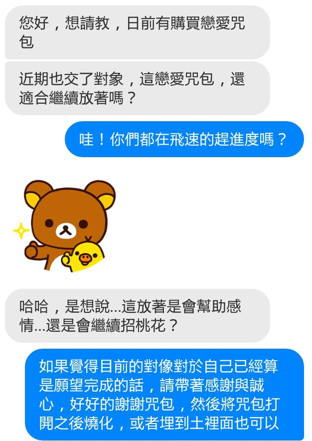 這位個案是在好幾年前購買戀愛咒包的